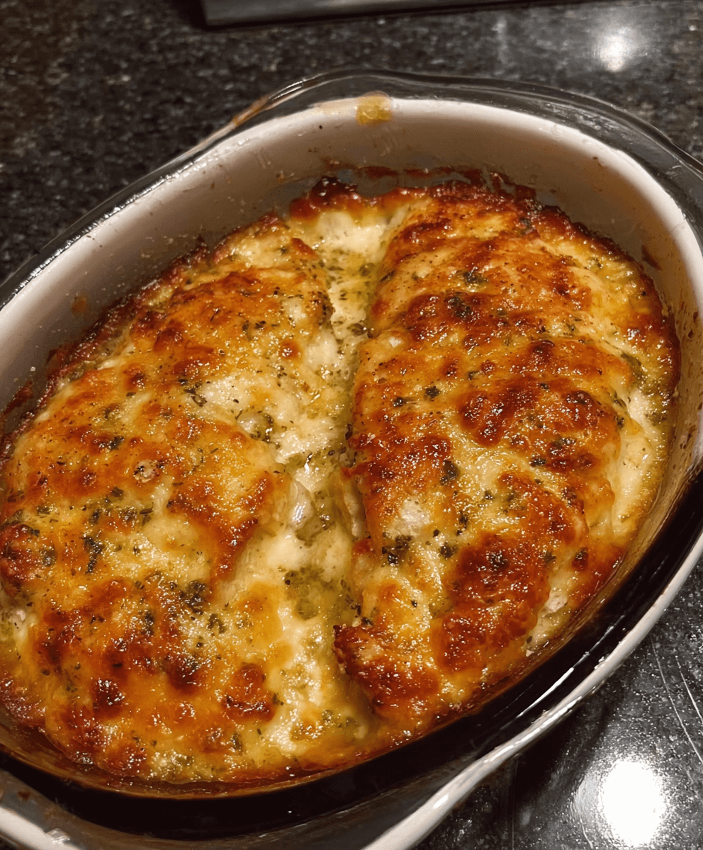 And then there’s the cheese. A thick layer of shredded cheddar and mozzarella gets broiled on top until it’s bubbling and golden. It’s rich, it’s gooey, and it turns a simple chicken breast into something that feels almost indulgent.