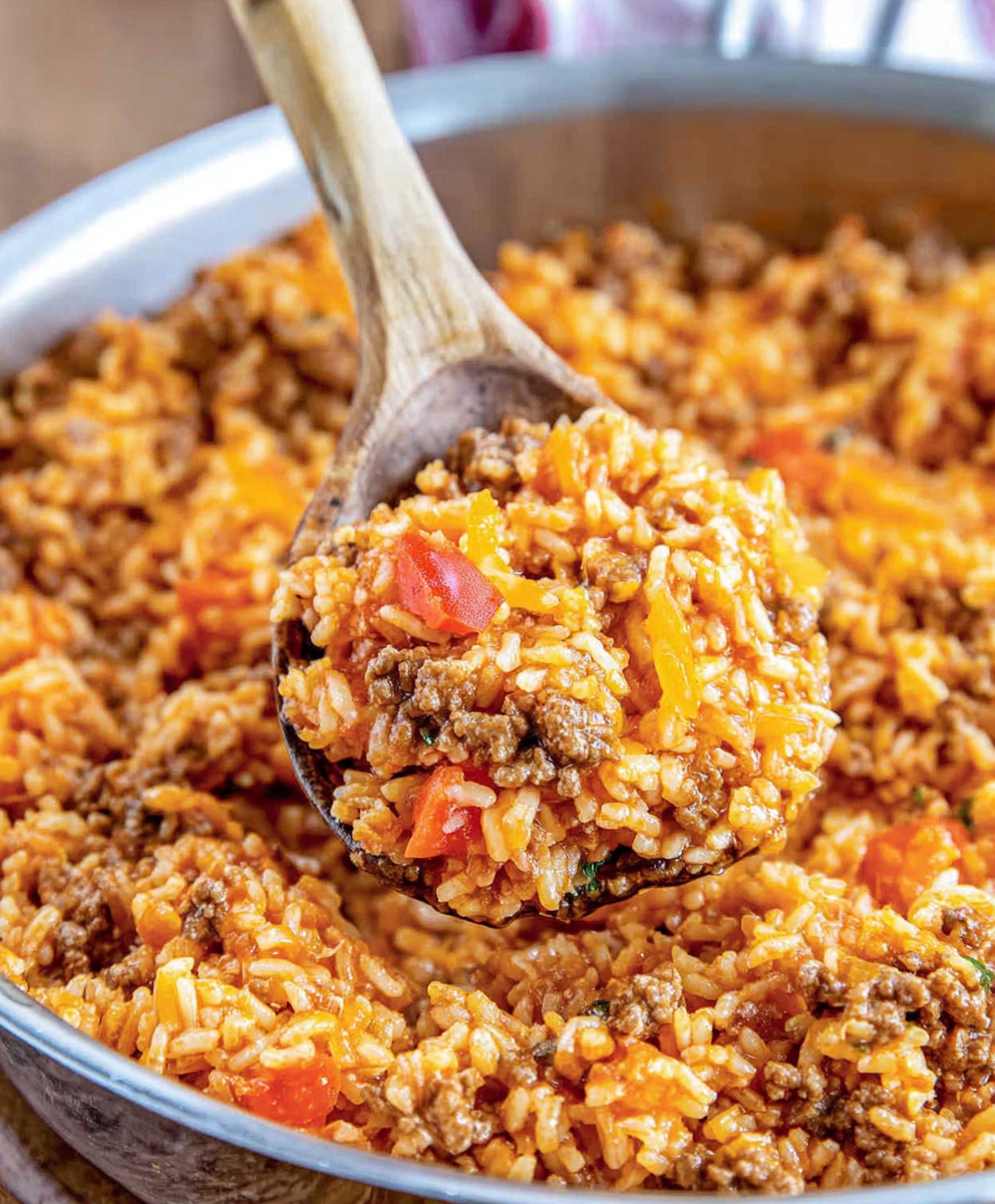 Some versions mix everything into one skillet. Others build bowls. This recipe keeps things easy and flexible: saucy taco beef over rice, then everyone adds what they like.